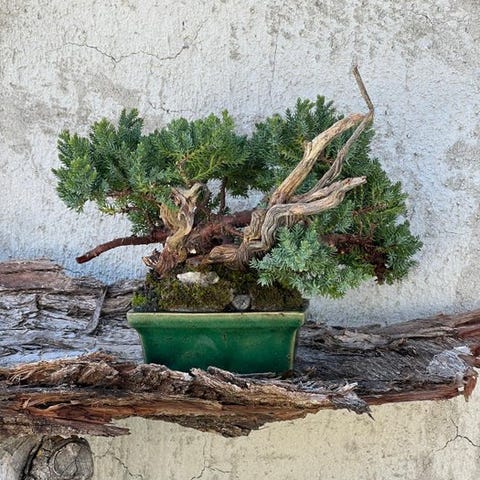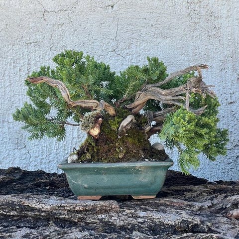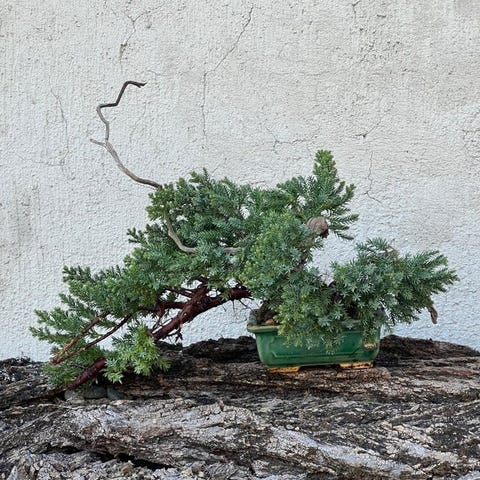 Juniperus procumbens, især sorten 'nana', er en stedsegrøn nåletræsform med krybende vækst, oprindelig fra Japan, ideel til bonsai takket være sin lave og tætte vækst med nåleformet grågrønt løv. Meget modstandsdygtig over for kulde, tørke og behov for lidt vedligeholdelse. Den tilpasser sig til forskellige jordarter, så længe de er godt drænet.