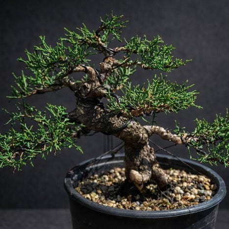 Et særligt og udtryksfuldt kunstværk, der afspejler harmonien og æstetikken i bonsai-håndværket.