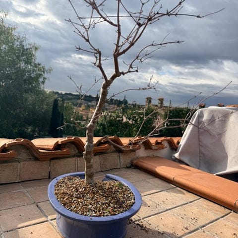 Håndtegnet tegning i kul af et bonsai-træ, lavet af bonsai-kunstneren Roberto Liccardo. Værket er signeret af kunstneren og viser hans forfinede forståelse af bonsai-form, balance og bevægelse.