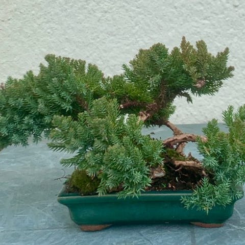 Blå enebær bonsai fra frø, eviggrøn, cirka 5 år gammel, stamme 5 cm, træhøjde 20 cm, potte 10 cm bred og 5 cm høj, oprindelse Italien. Klik på den blå "gå til varen" knap, for at købe eller byde på denne vare. Den samlede pris vil blive vist inden du afgiver dit bud.