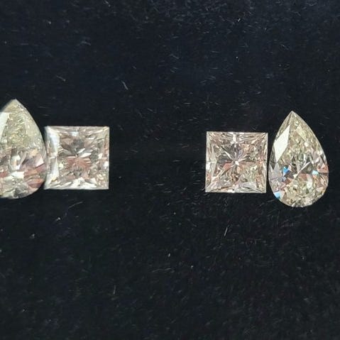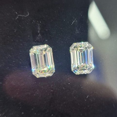 1 Matchende Par Emerald Cut og 1 Matchende Par Round Cut Diamanter Certificeret og Inskriberet af IGI Laboratoriet.