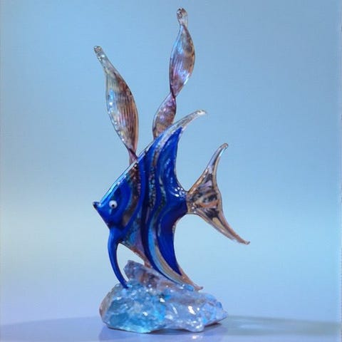 Smukt Murano-glas-akvarium, helt håndlavet af mesteren Cristian Tagliapietra i hans værksted på Murano-øen, ved hjælp af lampwork-teknikken (flammebearbejdning).