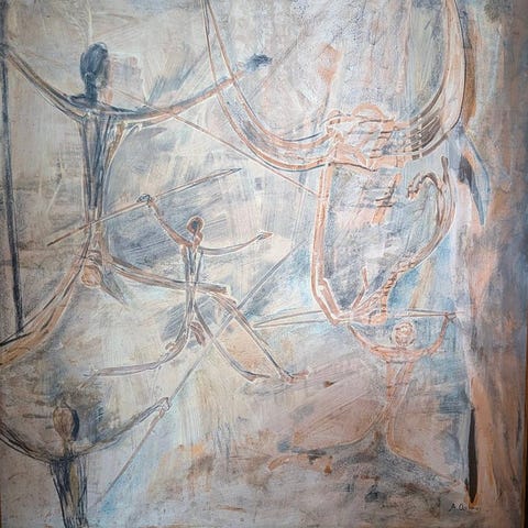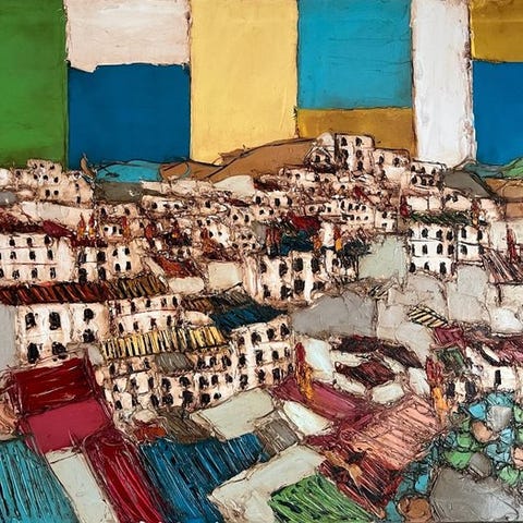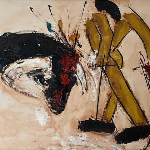 - Instinto en Naranja (2025). Blandet teknik på to plader forberedt med gesso og stofrester (120x100 cm og 100x100 cm). Totale mål 120x200x4 cm.