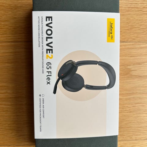 trådløse hovedtelefoner, Jabra, Evolve2 65, Perfekt, Super fede hørebøffer sælges med docking station og da der kun er 1 højtaler kan den også bruges i bilen/ cyklen osv bluetoth forbindelse til mobil virker suverænt og opkald svares på at man vipper mikrofonen ned hvilket opkaldet besvares samt en rød lampe lyser så man kan se man er optaget imens man snakker samt docking station