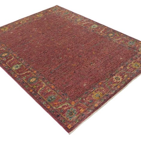 Dette tæppe er fremstillet med stor omhu af høj kvalitet håndspundet fåreuld. Dens tætte knudning, den bløde struktur og de naturlige farver gør det til et stilfuldt kunstværk for ethvert opholdsstue.