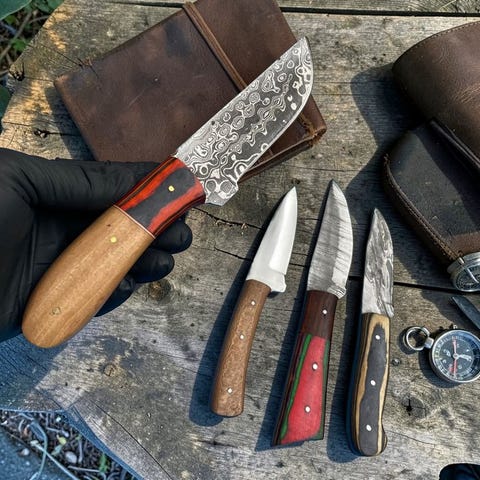 Tilbage ved populær efterspørgsel: Vi relancerer vores eksklusive Pattern-TWISTED stål-knive – håndlavet i USA! Kære værdsatte kunder, Vi er begejstrede for at bringe disse fantastiske pattern-FOLDED stålknive tilbage takket være overvældende forespørgsler fra vores elskede fællesskab! Særligt lavet til dem, der værdsætter antikke æstetik, vintage-magnet og autentisk brugt/slidt karakter — disse blade har smukke twistede og lagdelte mønstre, der fremkalder historisk håndværk. Fremstillet lige her i USA blandes traditionelle smedeteknikker med højtydende kanter (ved brug af premium stål som Shirogami-inspirerede høj-kulstofkerner til udsøgt skarphed og holdbarhed, typisk hærdet til 52–58 HRC). Perfekte for samlere, køkkenentusiaster der sætter pris på arvevare-kvalitet eller udendørs eventyrere der søger unikke, historiefortællende