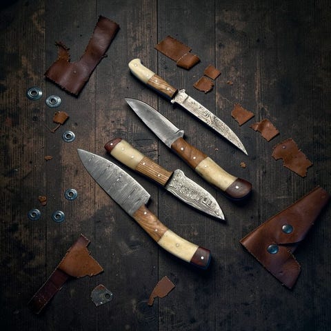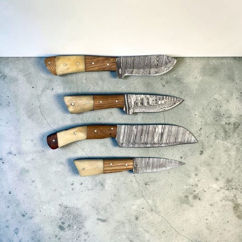 Set of FOUR, Hand-Forged with Old & Twisted Steel, Japanese Style Knives from...