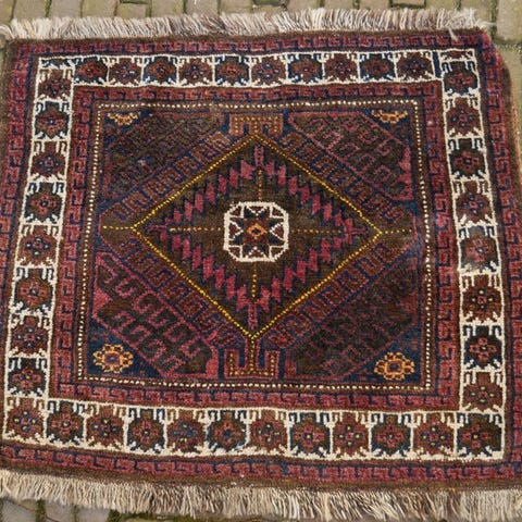 Afghanistan, Vintage Baluch Soumak Kelim saddeltaske, uld på uld, 110 cm × 50 cm, midt-20. århundrede, generelt i god stand med tegn på ældning. Klik på den blå "gå til varen" knap, for at købe eller byde på denne vare. Den samlede pris vil blive vist inden du afgiver dit bud.
