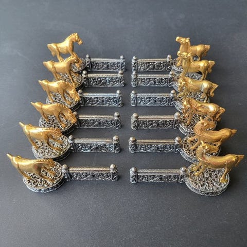Lot af 18 smukke knivhviler - til bestikaflæggelse - Heste - i sølvfarvet metal - 1970 - Frankrig