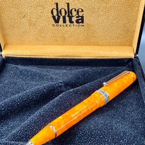 Delta Adivasi kuglepen i harp/polyester, model Adivasi, fremstillet i Italien, én enhed, periode 2010–2020, i nærmest ny stand og i funktion, serienummer 0154/1857. Klik på den blå "gå til varen" knap, for at købe eller byde på denne vare. Den samlede pris vil blive vist inden du afgiver dit bud.