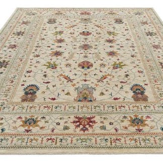 Denne elegante håndknyttede designer-tæppe overbeviser med sit klassiske Ziegler Farahan-mønster i en særligt stilfuld og moderne farvepalette.
