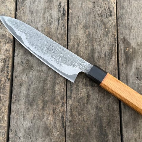 Køkkenkniv - Amerikansk håndtag i naturtræ og blad fremstillet af 1095/15N20 ...