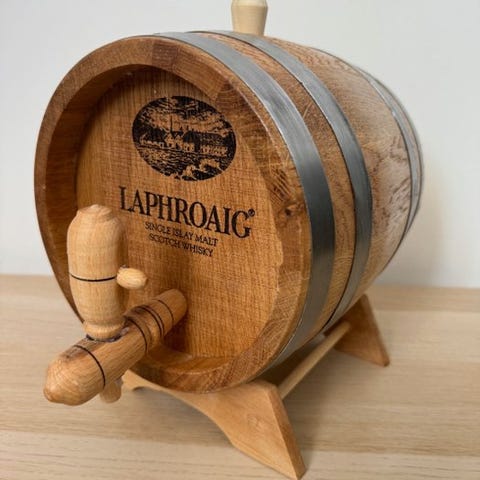 Jeg sælger en flot egetræstønde egnet til opbevaring af alkohol med en kapacitet på 3 l