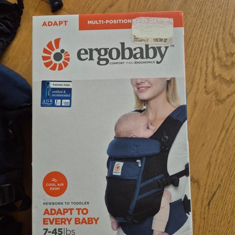 Ergobaby Adapt Cool Air bæreselen i navy/blå. Justerbar ergonomisk bæresele med polstrede skulderstropper og bred hofterem. Modellen har netpaneler for bedre ventilation og kan indstilles i flere størrelser efter barnets vækst, jf. størrelsesguiden på indersiden.