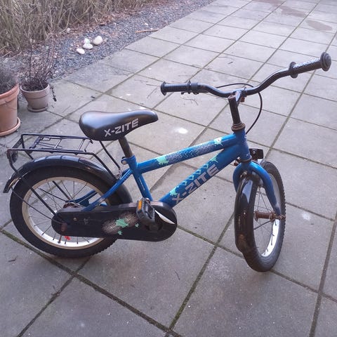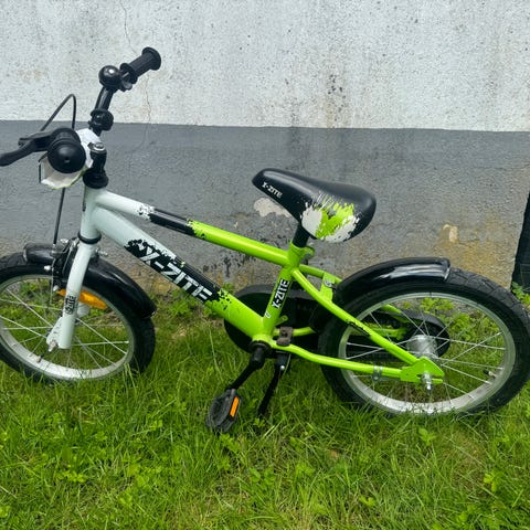 X-Zite Rocket børnecykel med 16" hjul i sort og grøn. Cyklen har lige styr, fodbremse bagtil og håndbremse foran. Udstyret med skærme, kædeskærm og reflekser i hjulene. Sadel og styr kan typisk justeres i højde, så cyklen kan tilpasses barnets størrelse. Velegnet som første større cykel til børn, der passer til 16" hjulstørrelse.