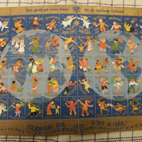 Danmark, postfrisk, Julemærker, helark, har været opbevaret udfoldet, men nogen kan måske have været foldet i løbet af årene.