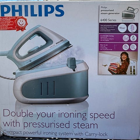Leifheit strygebræt med integreret dampstation. Sættet består af et stabilt strygebræt med polstret betræk og en separat dampenhed med tilhørende strygejern. Dampenheden har kontrolpanel med knapper og indikatorlamper samt holder til strygejernet. Velegnet til strygning af tøj og tekstiler i hjemmet eller mindre erhvervsmæssig brug, hvor der er behov for kombinationen af strygebræt og dampstation i én samlet løsning.