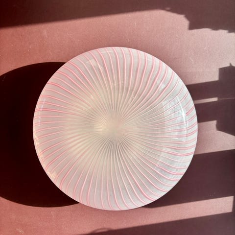 Sjælden vintage Murano plafond i lyserødt glas med lyserøde striber 37 cm