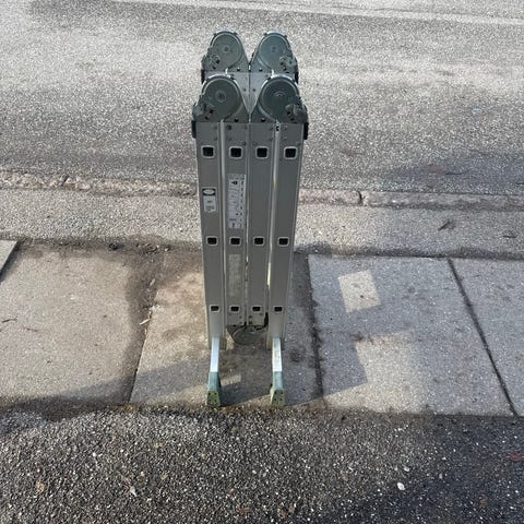 Alulock kombistige i aluminium. Stigen kan anvendes som fritstående stige og som enkeltstige op ad mur. Den har flere justerbare trinsektioner og stabiliserende tværbom i bunden. Egnede anvendelser omfatter arbejde på husfacader, tagrender og andre opgaver, hvor der er behov for ekstra arbejdshøjde. Sikkerhedsanvisninger og piktogrammer er angivet på siden af stigen.
