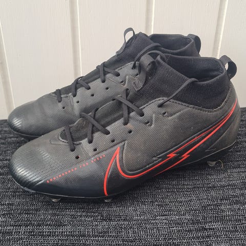 Nike Mercurial str 31 fodboldstøvler i sort med snørelukning og soklignende skaft. Ydersålen er udstyret med faste knopper, der er velegnede til brug på græsbaner. Overdelen er i syntetisk materiale med Nike-logo og Mercurial-tryk på hælen. Velegnet som fodboldstøvler til træning og kamp.