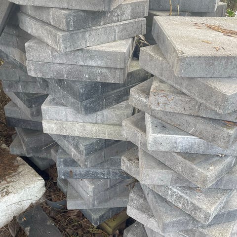 Beton fliser i kvadratisk form og grå farve. Fliserne egner sig til udendørs belægning, f.eks. terrasse, gangsti eller indkørsel. Flere ens fliser i samme mål, stablet på palle, som kan bruges samlet eller enkeltvis afhængigt af behov for belægning. 40 x 40