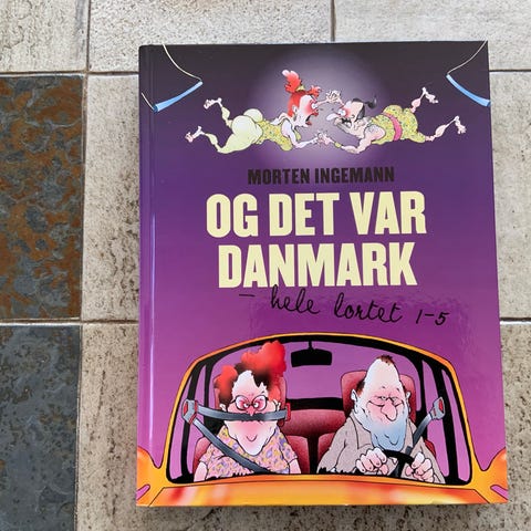 Morten Ingemann "Og det var Danmark – hele lortet 1-5" tegneseriebog. Hardback-udgave med samlede striber fra serien "Og det var Danmark". Bogen indeholder humoristiske tegneserier med farveillustrationer på alle sider. Velegnet til læsere, der ønsker en samlet udgave af de første fem bind i serien.