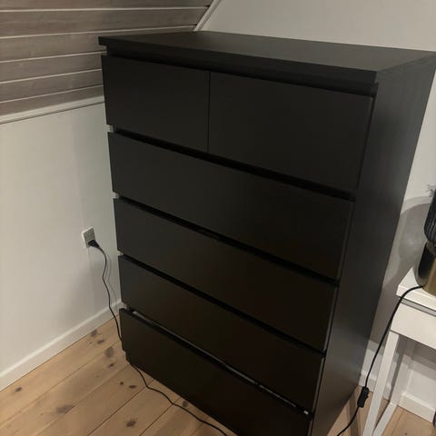 Ikea chest of drawers, good condition, one or two handles are a bit loose but it can be fixed. Pick up in Hundige/Greve. Dimensions on last photo. Original price was 1000DKK.