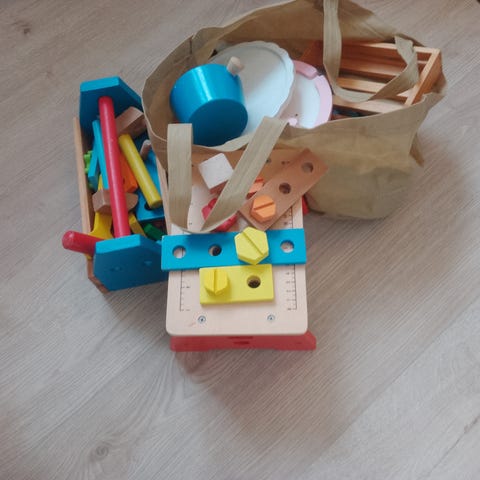 Blandet køkkenting og mad i træ, hent det hele for 400,-