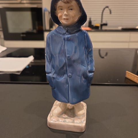 Fin porcelænsfigur fra Bing & Grøndahl, designet af Ingeborg Plockross Irminger. Figuren forestiller et barn med to paraplyer og omtales ofte som Ole Lukøje.