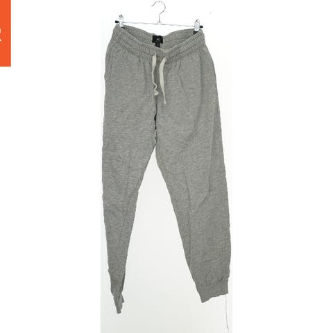 Et par grå sweatpants med elastisk talje og snøre. Bukserne har lommer på siderne og er lavet af et blødt og komfortabelt materiale. Det er en afslappet stil, ideelt til fritid og komfort.