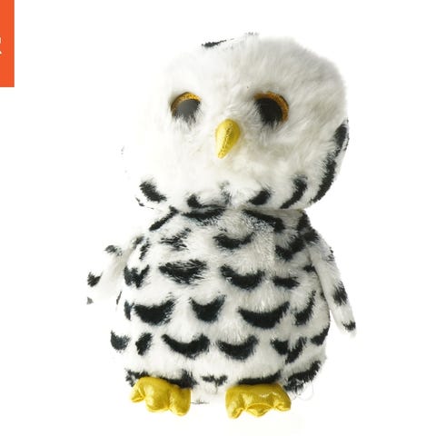 Dette er et bamseformet ugle plysdyr med en højde på 23 cm. Den har orange og røde vinger og ører med en gul næb. En stor grøn plet pryder maven, og stoffet er lavet af både ribbet og almindeligt tekstil. Den har et sødt ansigt med store gadelygte-øjne. En branding er synlig nederst på siden med teksten 'Lilliputiens.'