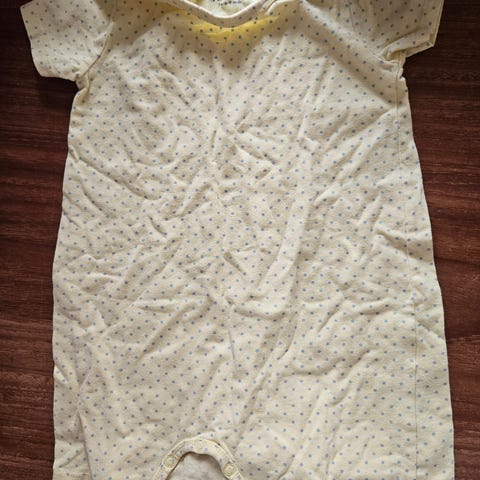 Denne heldragt til baby er lyserød og har lange ærmer og lange ben med fødder. Den har en hjerteapplikation på brystet og åbner langs fronten med trykknapper for nem påklædning. Dragten ser ud til at være blød og behagelig for babyen at have på.