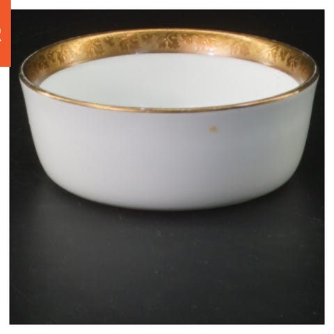 Den vist genstand er en dekorativ skål med låg, udført i en gylden metalfarve. Skålen er udsmykket med indviklede mønstre og har en stilfuld fod, der hæver den fra overfladen. Det forgyldte låg er aftageligt og er ligeledes dekoreret med et subtilt design. Skålens størrelse er 11 cm i højden, hvilket gør den til en ideel pyntegenstand.