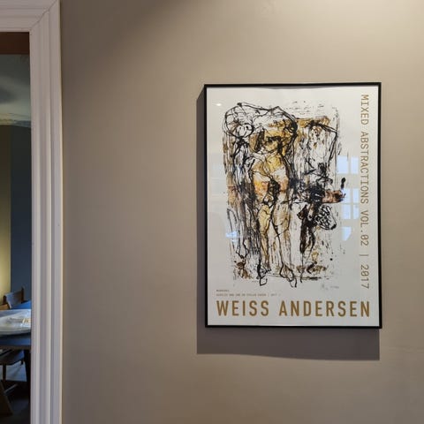 Vægdekoration bestående af to hvide billeder. Størrelse 60x80 cm