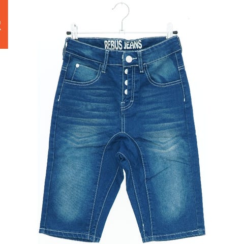 Et par blå børneshorts i økologisk bomuld med elastisk talje og to knapper foran. De har to sidelommer og er lavet i et let materiale. Shortsene er enkle og velegnede til afslappet brug.