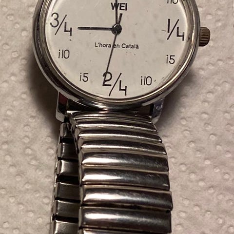 Blå urskive og beige rem
