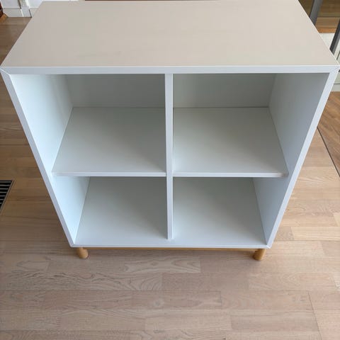 Der er 5 reoler i den smalle model (35x25x35) og en enkelt i den dybe (35x35x35). En hvid, to grå, og tre blågrønne (se billeder)