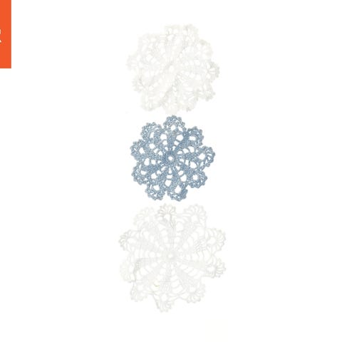 Denne vare er en lille, håndlavet, rund hæklet dug eller serviet. Den har en delikat design med blomster- og cirkelmønstre. Det primære materiale synes at være en hvid tråd, og størrelsen er Ø 8 cm. Perfekt til at pynte små borde eller anvendes som dekoration i hjemmet. Tags: hæklet, dug, dekorativ, håndlavet.