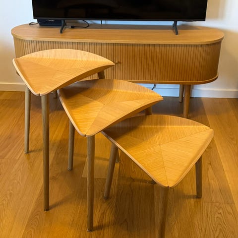 Lille sofabord/sidebord fra MAKE Nordic i modellen Cross. Pæn stand. Meget lille tryk på et af hjørnerne (billede to). Nypris 1290kr. Bud modtages.