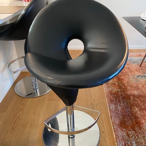 2 stk Lækre sorte kernelæder barstole. Virkelig dejlig siddekomfort.
