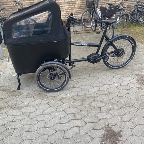 Ladcykel fra butchers & bicycles, kassen har en lille reven som kan ses på billeder, ellers en velholdt cykel som køre super godt på vejen.