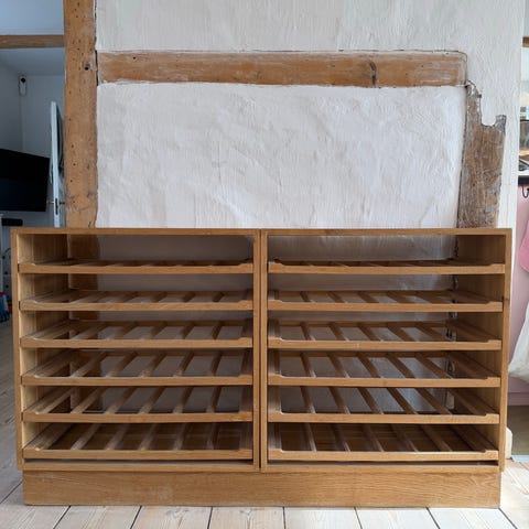 1 reol vinreol, 2/3 modul i målene h: 105, b: 46 cm, 32 cm, med flads til 40 flasker.