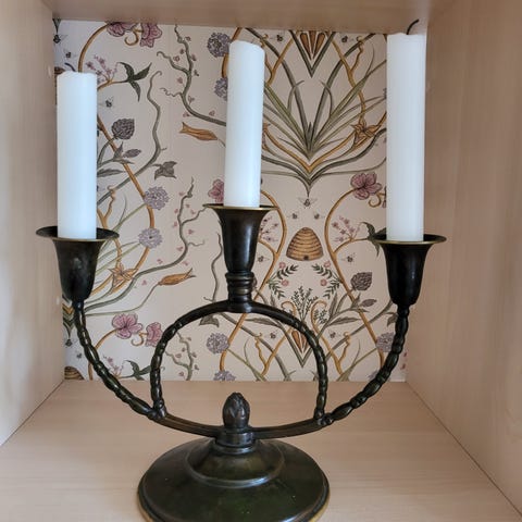 4 armet lysestege, håndsmedet, 37 cm bred, fod 23,5 cm og høj 28 cm