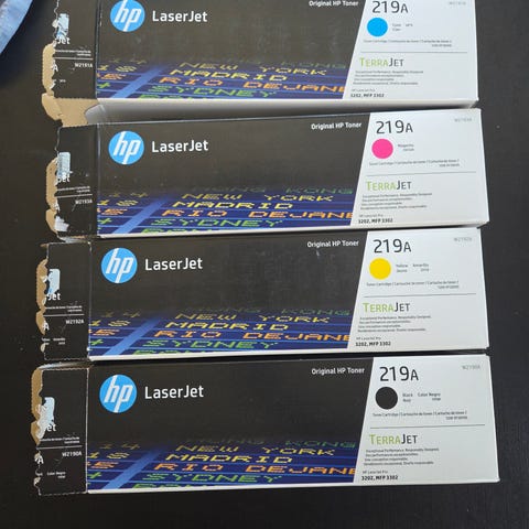Tonerne er uåbnede og klar til brug.