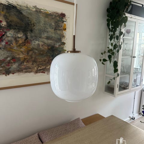 Velegnet som belysning ved seng, sofa, skrivebord eller i gang og opholdsrum, hvor der ønskes et afskærmet og diffust lys fra den hvide glasskærm.