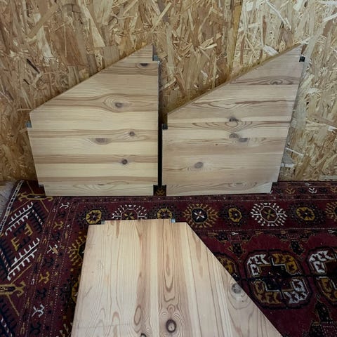 IKEA Ivar stigereol 226x80x30 cm. Malet gul med 7 hylder. 2 hylder er malet lyserød på undersiden og 1 på oversiden. Ønsker man ikke at se på den lyserøde farve kan hylderne placeres så det ikke ses. Jeg har malet dem lyserøde for at give lidt spil. Den er købt og malet i sommeren 2024