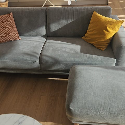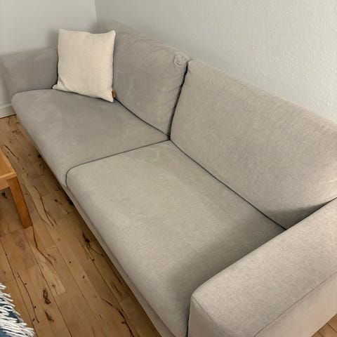 Nyland 3-pers. sofa med puf og nakkestøtte. Kun 1 år gammel. Sælges da den er for lille til vores behov.