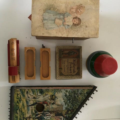se fotos.. div ting skib, slotte, bøger trætog, biler, matchbox, corgi o.a. Alt er i slidt stand.