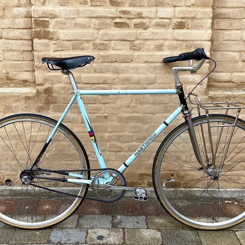 - blankt styr, frempind, ringeklokke, pedaler, håndtag