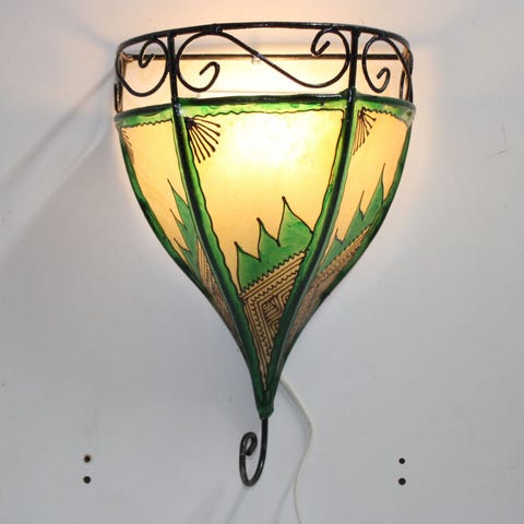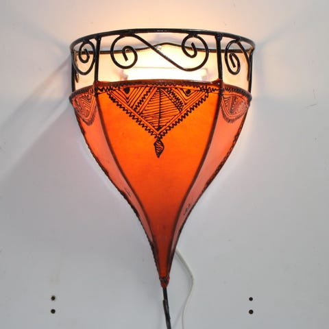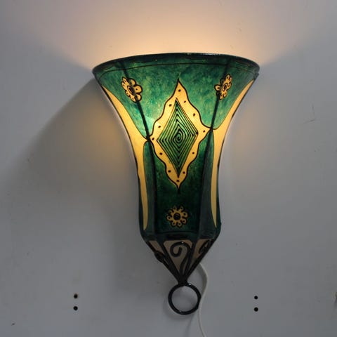 Ny Håndlavede Marokkansk Væg Skind lampe skærm med vægfatning og pære.